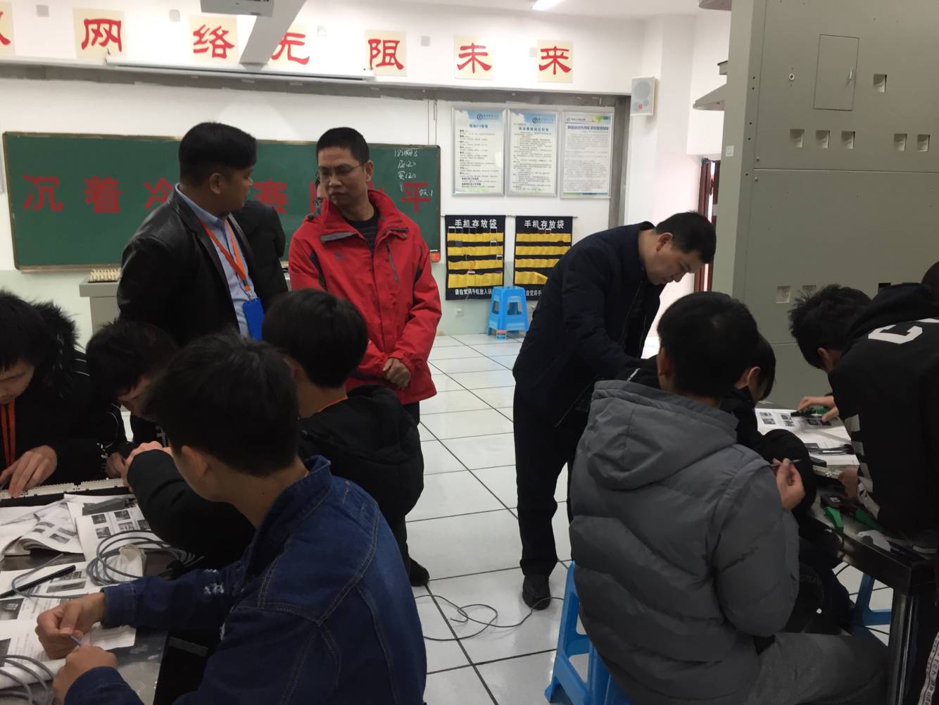 李经理一行受到了技师公司的热情接待,首先到实习生工作室看望了实习生,了解了实习生的生活工作环境,查阅了实习生的备课本、听课本等实习资料及作业批阅情况,并随机走入课堂,随机听取了一节理论课和一节实践课,并对授课实习生进行了指导。