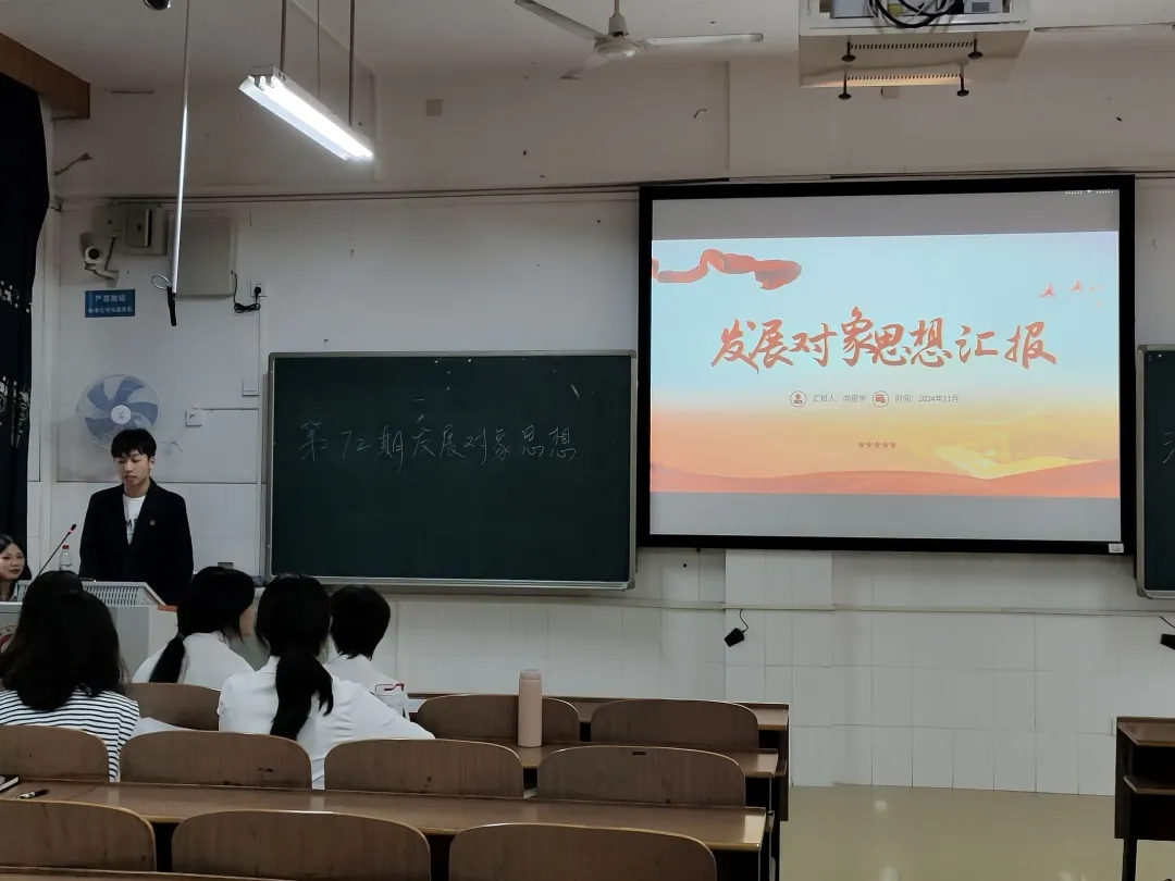 随后,发展对象们依次进行思想汇报。他们结合自身在学习、工作和生活中的实际经历,详细汇报了近期在思想、学习、工作等方面的状况,深刻剖析了自己优缺点,并提出了未来的改进措施。他们的汇报内容丰富详实、态度诚恳,字里行间透露出对党的忠诚以及对自身成长的严格要求,展现了他们对党的忠诚和追求进步的坚定决心。