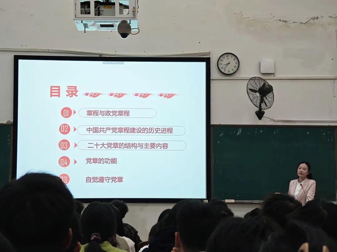 最后,唐艳委员强调自觉遵守党章的重要性,她鼓励大家在新征程上要深刻认识党章的地位和作用,深入思考党章的精神实质、核心要义,坚持对标看齐、学用结合,使党章的各项要求真正内化于心、外化于行,以实际行动向党组织靠拢。