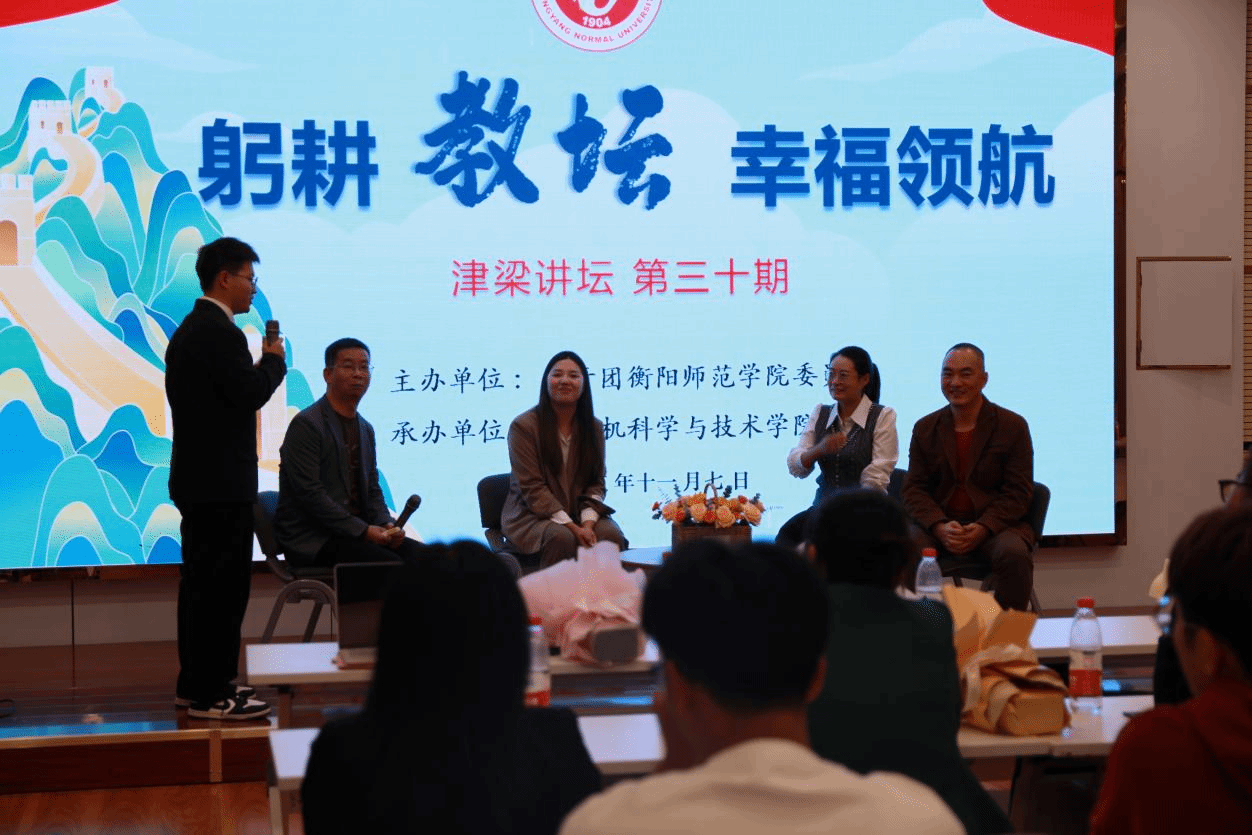 2023年11月7日晚,主题为“躬耕教坛,幸福领航”的第三十期津梁讲坛在东校区图书馆213学术报告厅顺利举行。此次讲座由校团委主办,DB真人旗舰承办。各相关职能部门部分负责人出席了此次活动,200多名师范类专业员工参加了此次讲座。