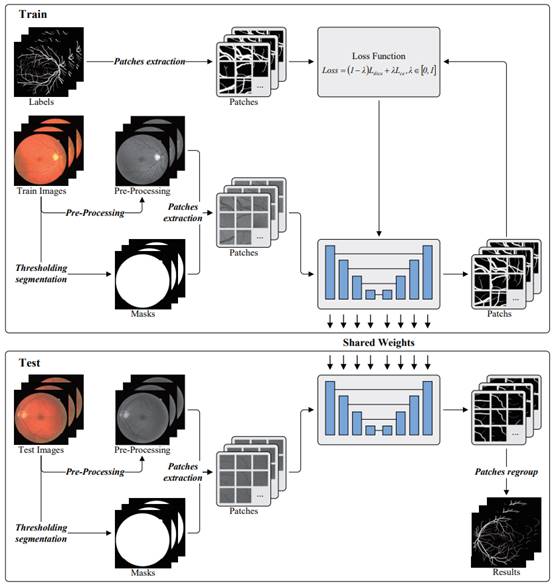 该论文是在公司焦铬教授的指导下完成,DB真人旗舰、智能信息处理与应用湖南省重点实验室为署名单位。论文核心理论是:现有的基于U-Net的视网膜血管分割方法取得了一定的研究进展,但复杂度过高,在训练和推理阶段需耗费大量的资源。这进一步限制了模型在终端设备上的部署,尤其是那些嵌入式的设备。其次,每个阶段的跳过连接会不加选择地融合本地信息。这引入了许多不相干的背景噪声。为了解决这些问题,本文提出了一种名为SepFE的视网膜血管自动分割算法,其整体框架如图1所示。首先,鉴于深度可分离卷积的出色工作,我们引入它们来取代其中的一些传统卷积层。通过减少参数数量和计算量,降低了所提模型的复杂性。其次,倒置的残差结构作为MobileNet V2的核心构件,我们将预先训练好的MobileNet V2直接注入编码器以充分提取上下文特征。众所周知,使用迁移学习可以使模型在一个高起点的方向上学习得更好。第三,我们提出了一个特征融合残差模块(FFRM),通过在相邻层分别使用倒置的残差结构来加强融合,利用它们的互补性来更准确地定位目标血管。在DRIVE、STARE和CHASEDB1数据集上的广泛测试表明,所提出的SepFE的参数数量仅为U-Net的3%,Flops仅为U-Net的8%,并且获得了更好的分割性能。通过与其他先进方法的比较,进一步证明了SepFE的优越性。