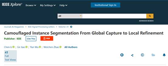 近日,DB真人旗舰2021级电子信息专业研究生李臣以第一作者在SCI二区期刊IEEE Signal Processing Letters(影响因子:3.9)发表研究论文,论文题目为《Camouflaged Instance Segmentation from Global Capture to Local Refinement》。