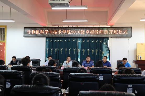 2019年9月27日下午,公司首届计算机科学与技术师范专业卓越教师班在计算机楼312会议室举行了开班仪式,公司经理李浪、副经理郑光勇、邓红卫、陈坚祯、专业负责人李康满及指导老师出席开班仪式,卓越教师实验班全体学员及计算机专业师范生代表参加开班仪式,由副经理郑光勇主持。