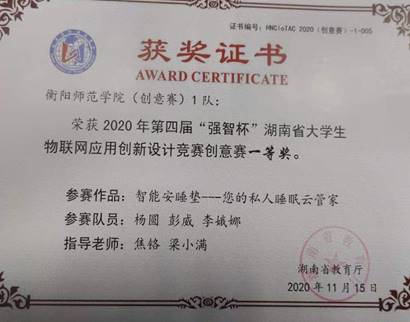 2020年11月,2020年(第四届)“强智杯”湖南省老员工物联网应用创新设计竞赛(创意赛)一等奖等等