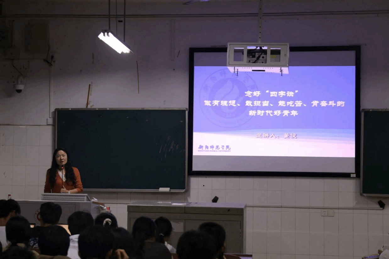 董部长的讲解紧紧围绕“四字诀”和“三部曲”,为新生们提供了一位优秀教育工作者的深刻见解。四字诀“心、信、馨、新”强调了在新征程中,青年学子要有理想、敢担当、能吃苦、肯奋斗,勇于追求梦想,坚定理想信念,砥砺前行。三部曲则提醒新生要坚定理想信念,听党话、跟党走,脚踏实地,敢想敢为又善作善成,努力成长为有理想、敢担当、能吃苦、肯奋斗的新时代青年。