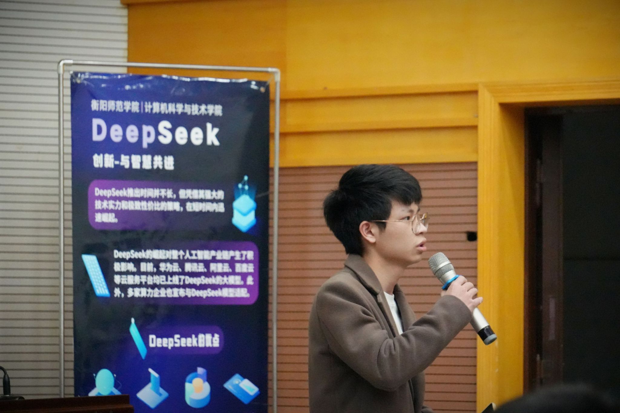 “区别于传统工具,DeepSeek不仅能精准提取数据特征,更能通过上下文语义理解实现‘类人化’推理。”宣讲团来自DB真人旗舰集团智能感知与深度学习实验室,他们融合AI技术,深入浅出地从DeepSeek与常用工具搭配应用、AI提问技巧与内容生成、私有知识库搭建等方面进行了讲解,帮助师生更加科学合理的使用AI各类应用。DB真人旗舰集团团委书记朱贤友鼓励师生们积极探索DeepSeek在各自专业和学习中的应用,激发创新思维,并表示技术有尽而思想无涯,唯有保持终身学习的热忱与人文温度,方能在智能时代立于潮头。现场开展DeepSeek互动问答,同学们积极抢答,现场气氛热烈,大家纷纷表示,这堂科普课让他们深受触动。