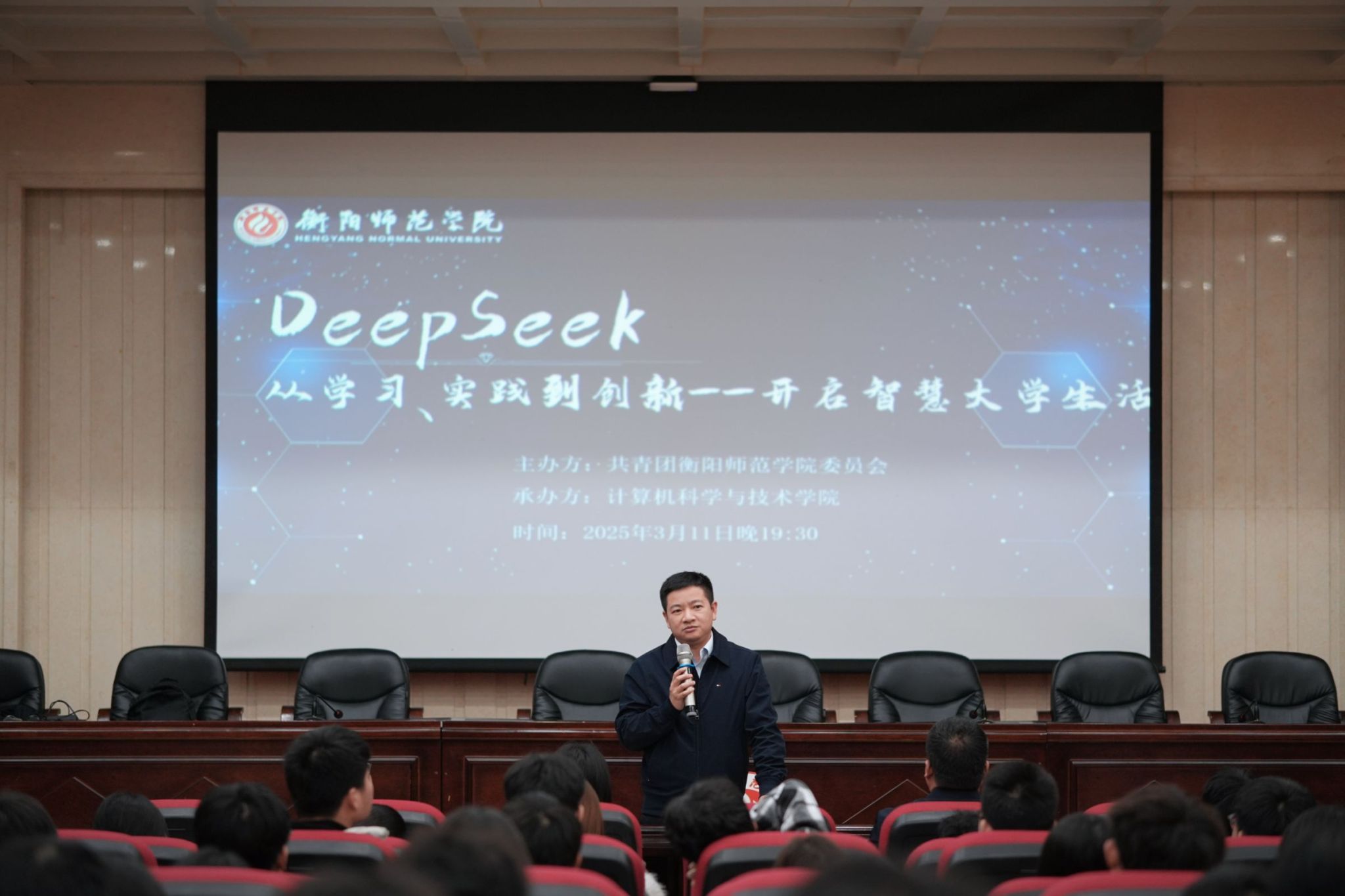 3月11日晚,由DB真人旗舰集团团委主办、DB真人旗舰承办的“DeepSeek,从学习、实践到创新——开启智慧老员工活”主题宣讲活动在外语楼北311教室举行。200余名师生齐聚一堂,聚焦人工智能时代老员工的成长路径,通过技术解析、经验交流与分享,为广大青年学子点亮智慧化学习与发展明灯。