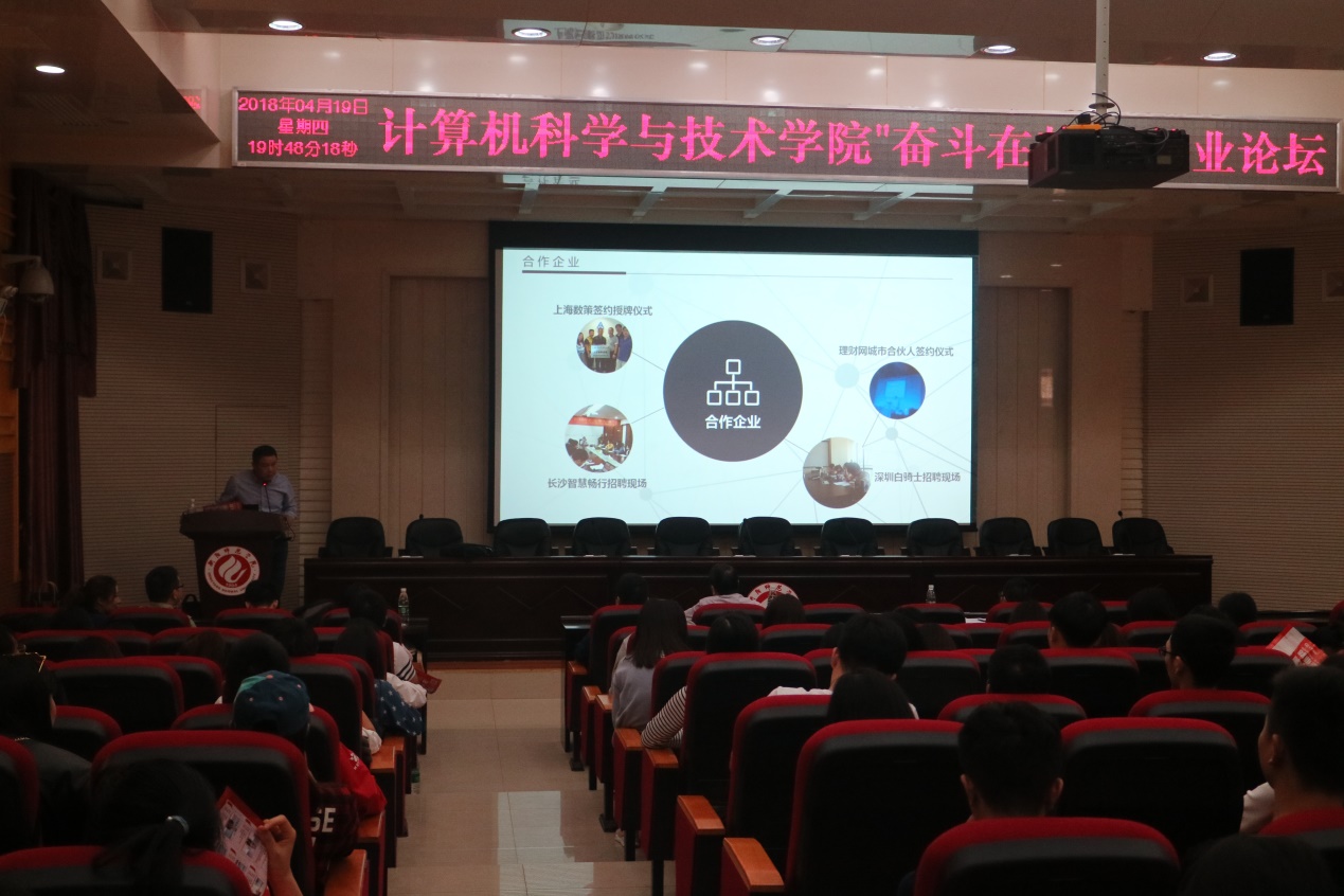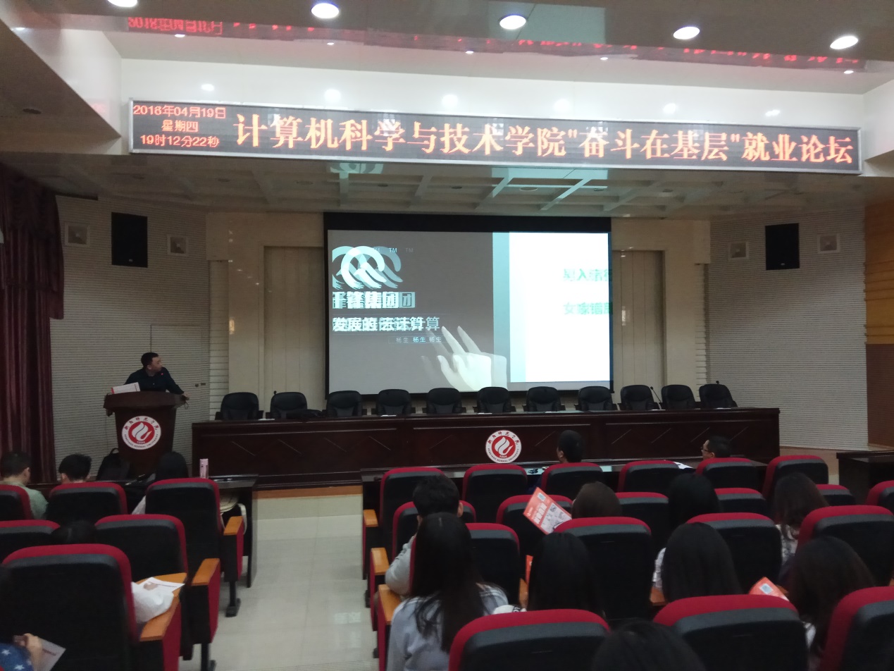 4月19日晚7点,DB真人旗舰“奋斗在基层”就业论坛在外语楼311召开,公司党总支书记陈洪清、经理李浪、副书记彭正、副经理郑光勇、辅导员徐峰、谢媛、匡娟丽,北京千峰教育集团大区总监肖总和云计算事业部杨总、湖南源辰科技公司刘总、北京尚学堂科技公司湖南区HR彭总和全院近200名员工参与了此次论坛,本次论坛由党总支书记陈洪清主持。