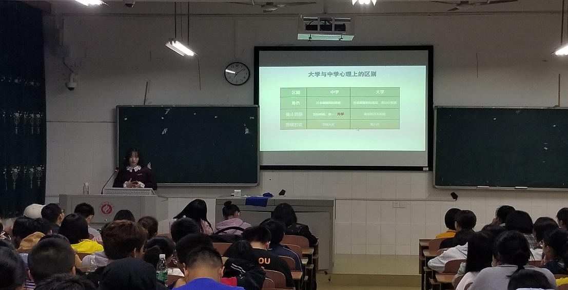 2018年10月25日下午公司辅导员谢媛老师为同学们开展心理适应讲座。谢媛老师讲大一新生刚入大学普遍存在的心理落差,紧接着老师强调了时间的重要性以及大学思潮的问题,再是几个简单的趣味心理测试,最后老师跟我们分享了一些关于心理方面的电影和电视剧,书籍以及很多富有哲理的名言警句。