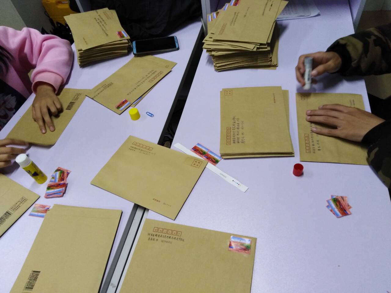 同学们利用课余时间书写家书,准确填好收信地址、收件人,邮编等重要信息,并密封信封。