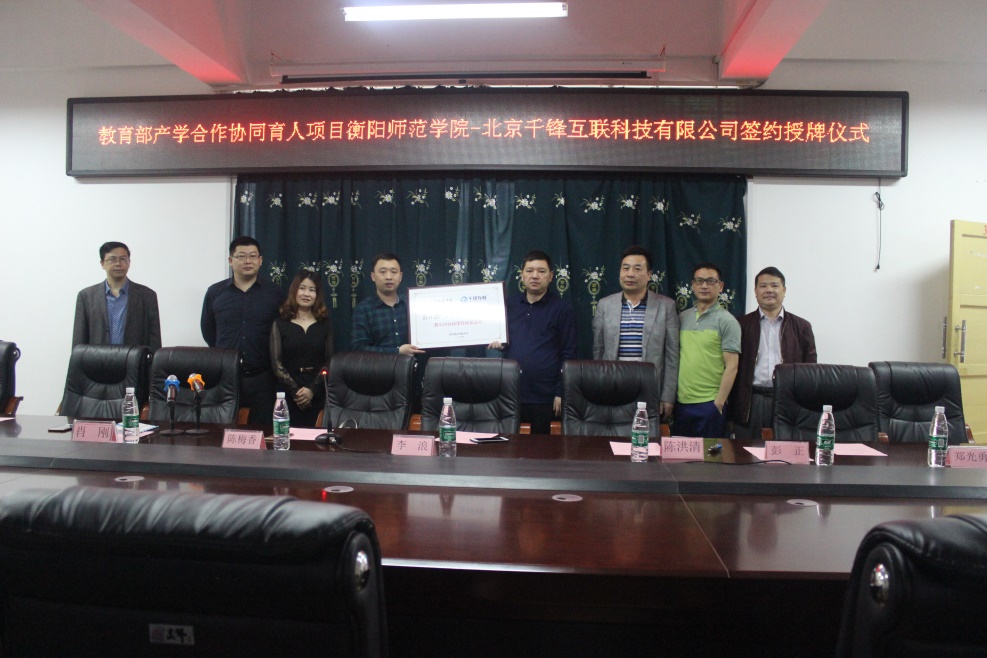 李经理代表计算机公司对肖刚一行表示欢迎,他简要介绍了公司和公司的基本情况,肯定了合作以来取得的成果,感谢北京千锋互联科技有限公司一直以来为计算机公司员工提供的实习实训,以及对公司双师型团队培训工作以及2017年来对计科院在线课程资源的建设给予了大力支持。李经理希望通过本次的教育部产学合作协同育人“C++程序设计语言”项目的实施,进一步把双方的合作推向全方位战略伙伴型,同时,通过双方共同努力,培育一批面向社会、训练有素的创新应用型优秀本科生,通过校企合作真正实现理论教学转化为生产力。肖刚总监随后也介绍了北京千锋互联科技有限公司主要情况,高度评价了公司的人才培养质量,并希望通过此次项目合作,深入推进校企合作协同育人。随后,双方举行了签约和授牌仪式。与会人员就项目实施进行了深入交流。