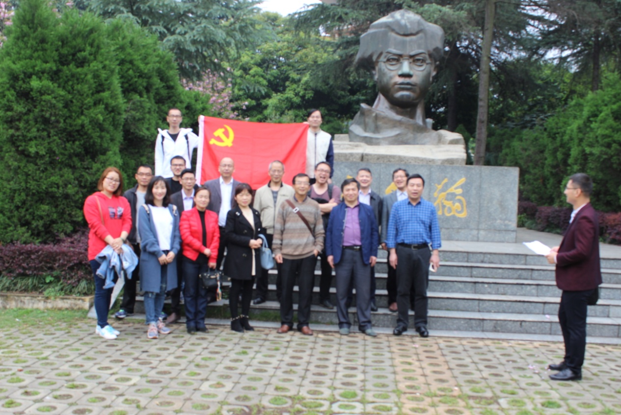 3月30日,清明节前夕,DB真人旗舰教职工党支部开设了清明祭忠魂讲堂。DB真人旗舰教职工第一和第二党支部的全体党员(因工请假的除外)近20名党员前往衡阳市西湖公园参加了在夏明翰烈士墓前举行的现场党课活动。