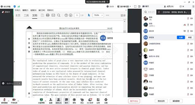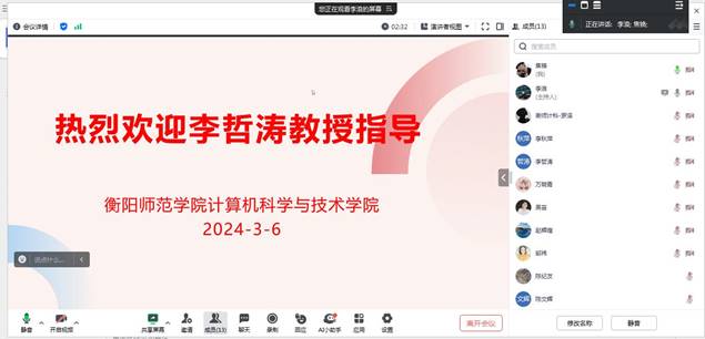 为了进一步提高国家自然科学基金申报质量, 2024年3月6日,DB真人旗舰邀请暨南大学李哲涛教授通过腾讯会议对公司教师的申报书进行一对一的指导,会议由经理李浪教授主持,全体项目申报负责人及部分老师参加了会议。