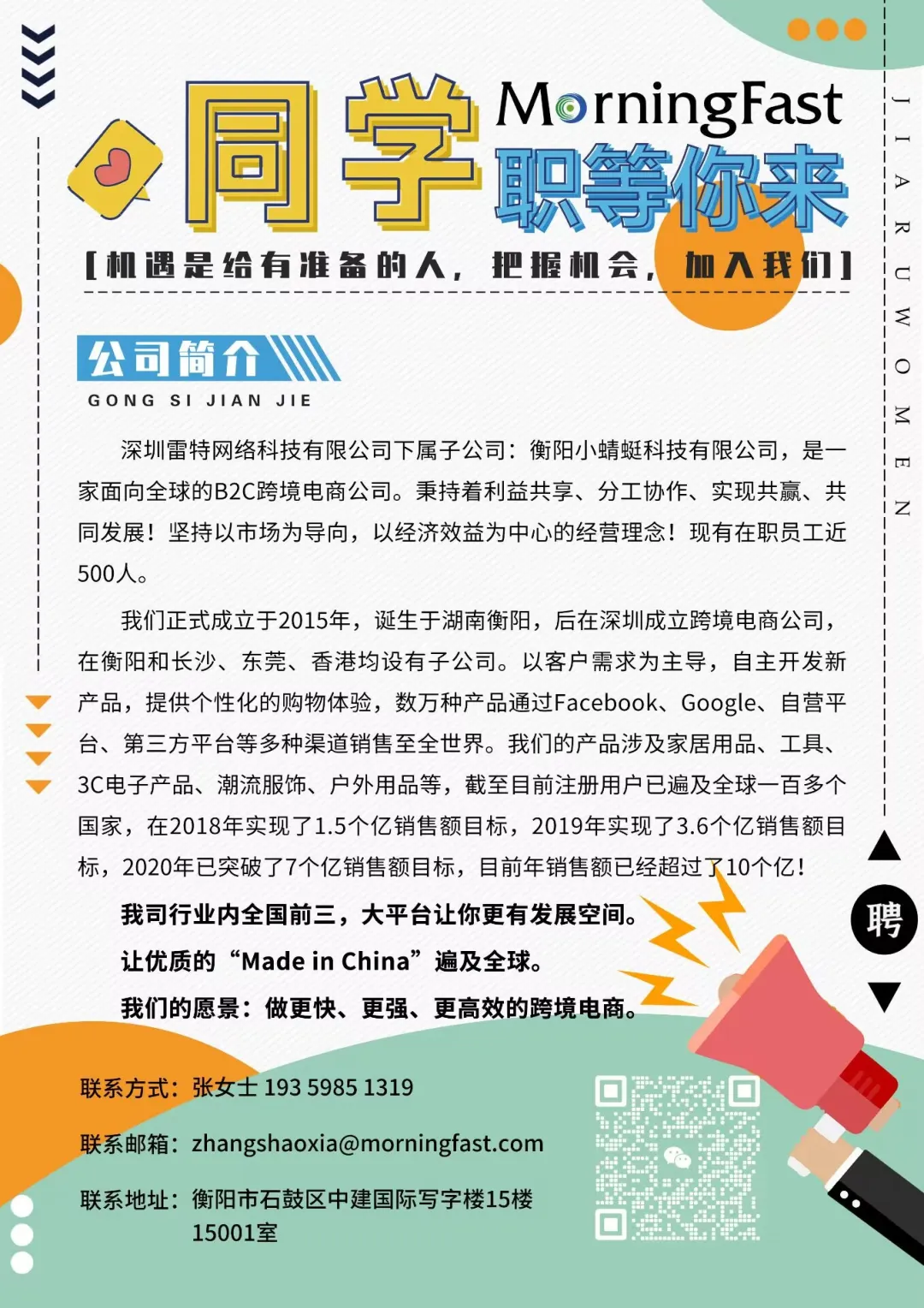 3.员工福利:双休、五险一金、年终奖、包吃、包住、话补、婚假、产假、节日礼品/礼盒、表现突出者有外出培训的机会,晋升空间大等